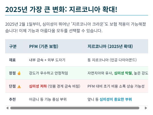 2025년 확대 적용: 보철 재료 선택의 변화 (지르코니아)