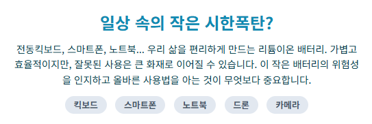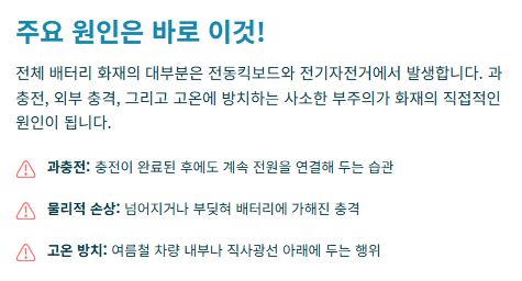 리튬이온 배터리를 사용할 때마다 우리의 작은 행동이 쌓여 결국 큰 차이를 만듭니다. 귀찮다는 이유로 안전 수칙을 소홀히 하는 경우가 많지만, 바로 그런 한순간의 방심이 큰 사고를 막아줄 수 있다는 사실을 잊지 말아야 합니다.
